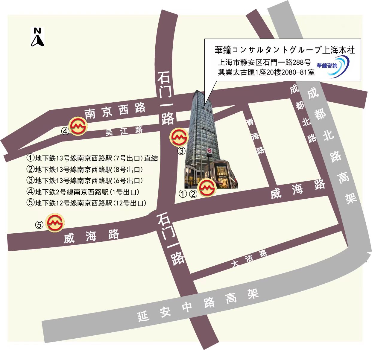 華鐘コンサルタントグループの上海本社は、オフィス(淮海中路755号新華聯大厦東楼23階)の賃貸契約期限満了により、2024年9月23日より上海市静安区石門一路288号興業太古匯への移転を予定していますので、お知らせ致します。